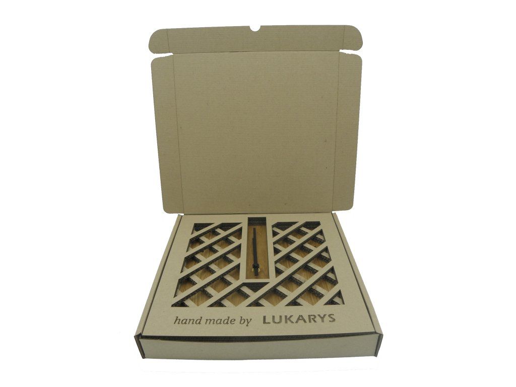 Používáme pevnou kartonovou krabici a místo plastových výplní speciální papírovou fixaci, která hodiny bezpečně drží na místě během přepravy.